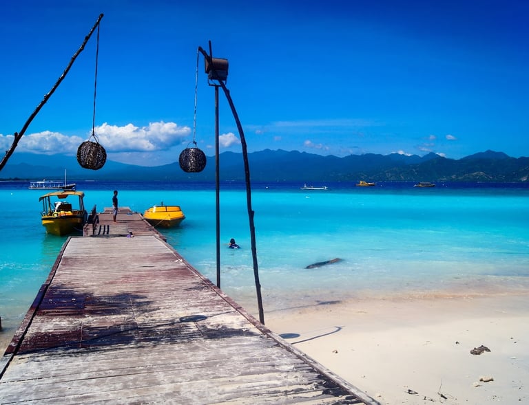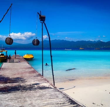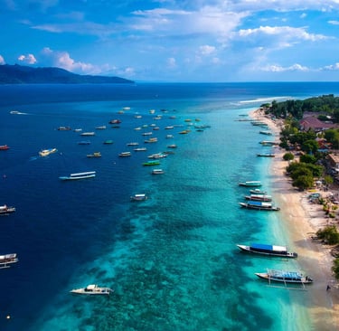 Crystal-clear turquoise waters, soft sandy beaches lined with coconut trees, and vibrant coral reefs teeming with marine life. Gili Air is a dream destination for snorkeling and diving enthusiastsâswim alongside sea turtles, colorful fish, and mesmerizing coral formations.